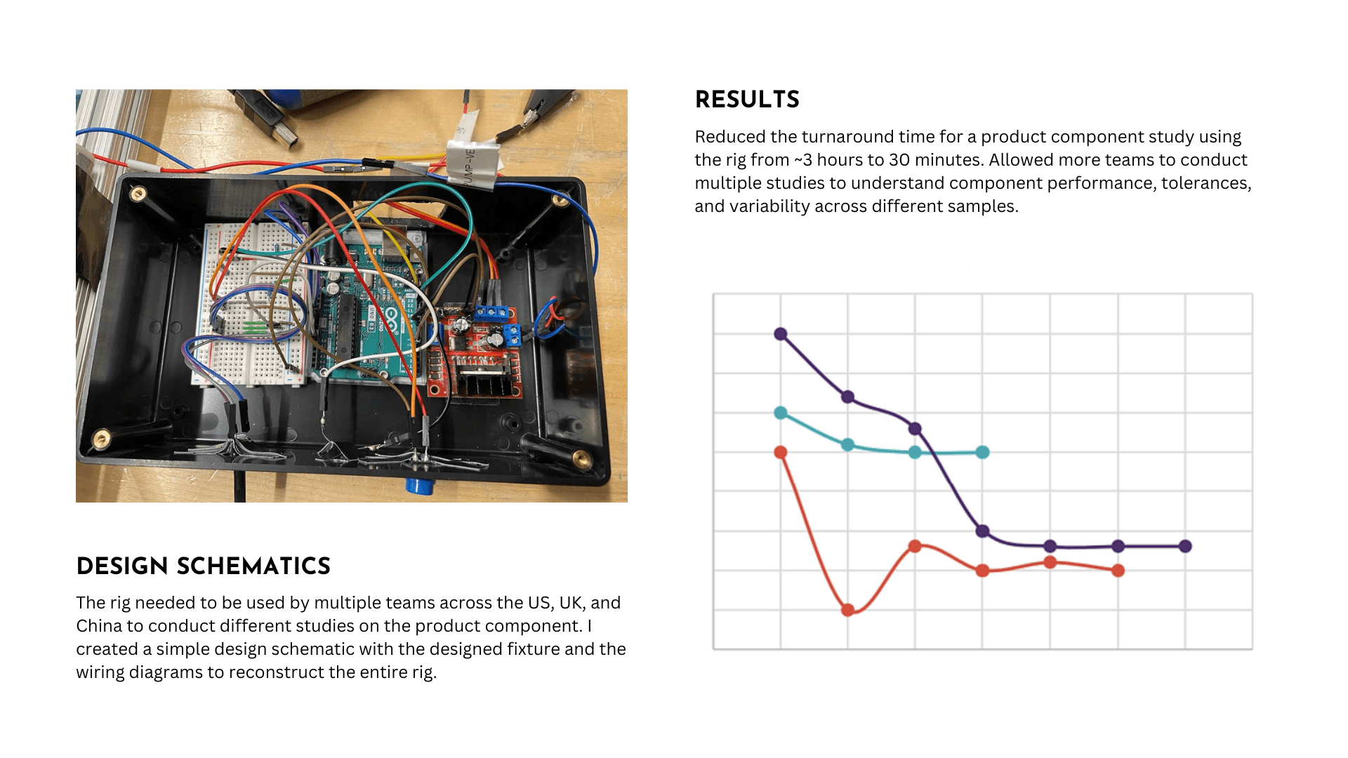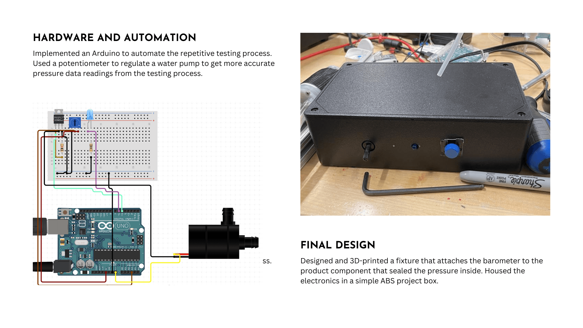 I interned with the Ninja R&D team for Ninja Thirsti, a new carbonated beverage product I worked on the key engineering systems that ensured the product met performance KPIs across manufacturing builds whilst collaborating with teams in Product Development, Design Engineering, Electrical/Software Engineering, Test Engineering, and Product Management.